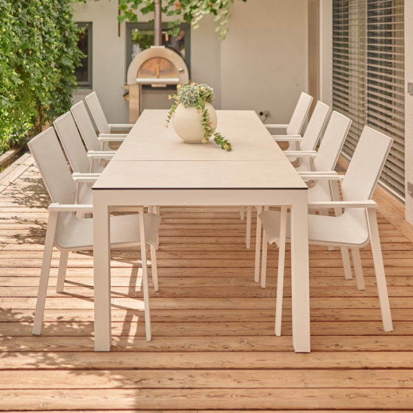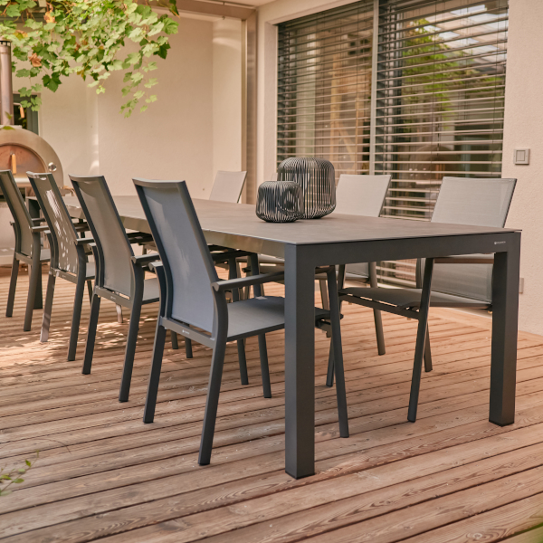 Der Forli Ausziehtisch ist damit die perfekte Lösung für alle, die Wert auf modernes Design, langlebige Materialien und flexible Nutzungsmöglichkeiten legen – ob im privaten Garten oder auf der großzügigen Terrasse.