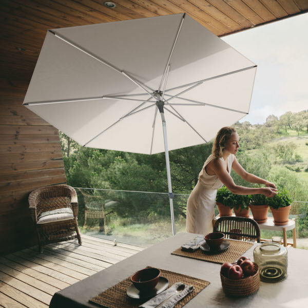 Trotz seiner Größe hat der kleine Schirm enorm viel zu bieten, denn gerade für verwinkelte Balkone oder kleine Terrassen ist er der perfekte Schirm. Sein Schirmdach aus wetterfestem Sunbrella-Stoff lässt sich mühelos mit Hilfe seines ergonomischen, schlanken Schiebers öffnen und als echtes Leichtgewicht durch sein Aluminium-Gestell ist der Schirm immer da einsatzbereit, wo die Sonne gerade am stärksten scheint.