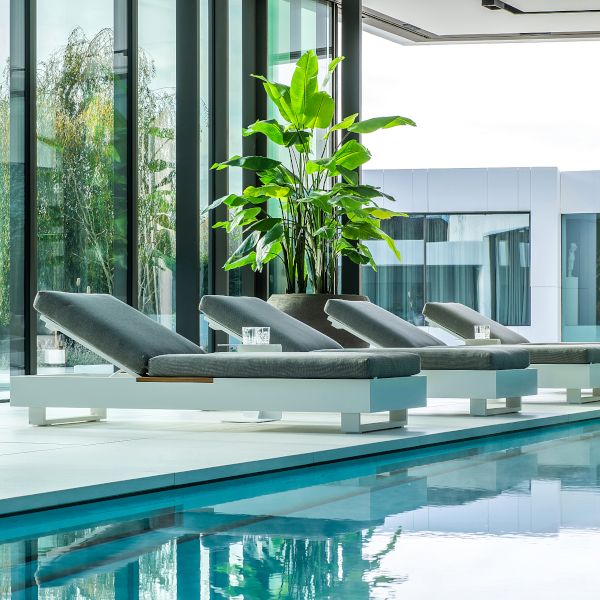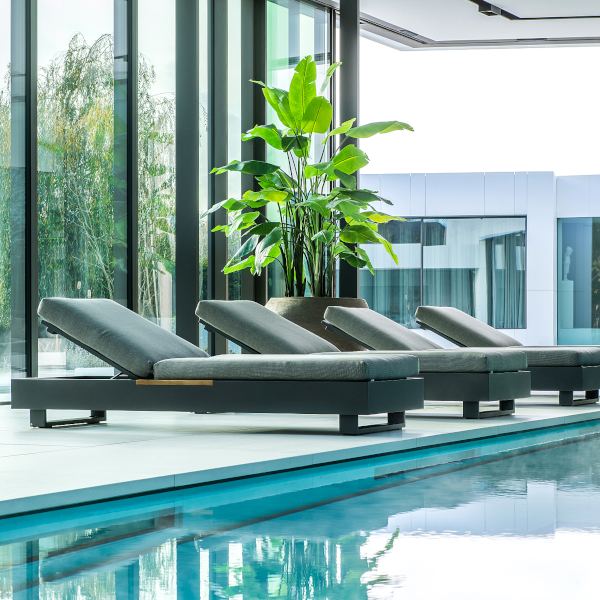 Die seitlichen Akzente aus Teakholz verleihen der Liege nicht nur eine exklusive sondern auch warme Note. Für zusätzlichen Luxus sind optionale Polsterauflagen erhältlich, während die verstellbare Rückenlehne eine individuelle Anpassung für optimalen Liegekomfort ermöglicht. Mit integrierten Rollen lässt sich die Liege mühelos nach Ihren Wünschen positionieren, stets der Sonne hinterher.