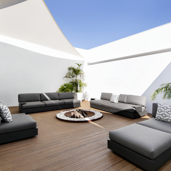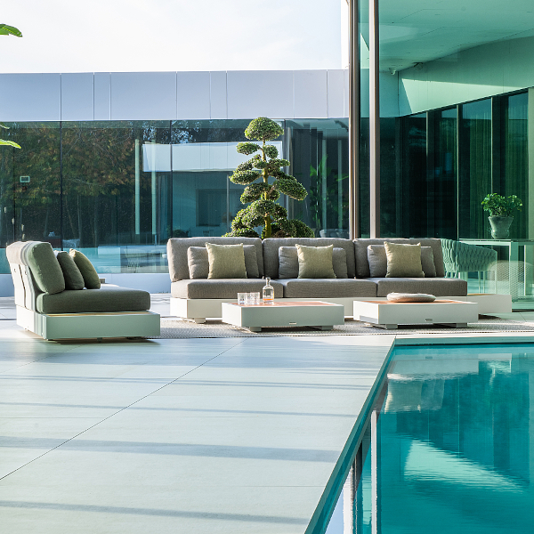 Besonders elegant und cool lässt es sich auf den Bari-Loungemöbeln von Jati & Kebon relaxen. Mit ihrer schlichten und modernen Eleganz werten Sie jeden Outdoorbereich auf und verwandeln Ihren Garten oder Terrasse in eine Wohlfühl-Oase. Die variablen Module aus Aluminium können beliebig miteinander kombiniert und sogar in drei unterschiedlichen Höhen montiert werden: 22, 27 und sogar 32 cm Sitzhöhe.