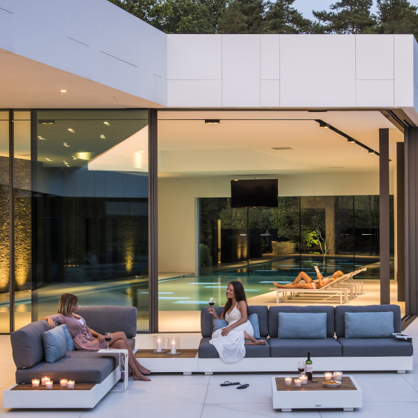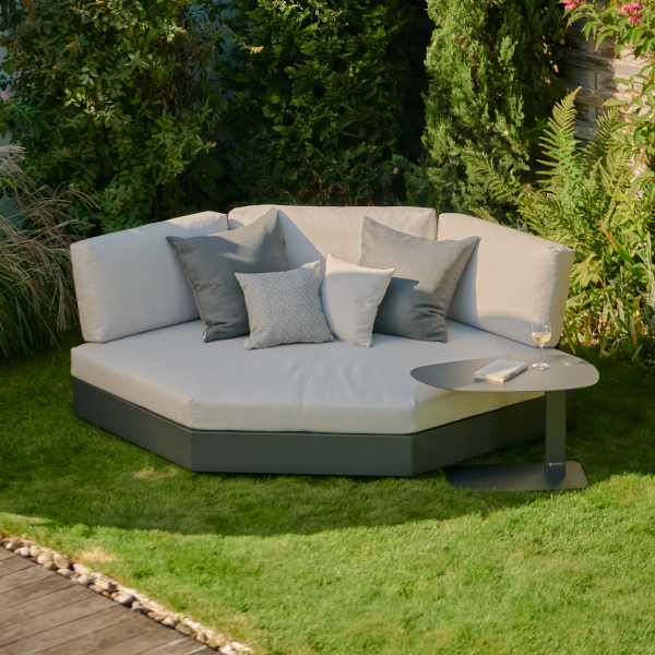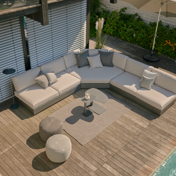 Noch nicht überzeugt? Wie wäre es damit: Selbst die Sitztiefe lässt sich in zwei Stufen einstellen. Und die einzelnen Module können Sie selbstverständlich ganz nach Belieben kombinieren. So, wie es Ihnen gefällt oder in Ihren Außenbereich passt. Aber eine kleine Aufgabe haben wir noch für Sie: Welche Farbe darf es sein? Aluminium Eisengrau Matt Grau oder Aluminium Weiß?
