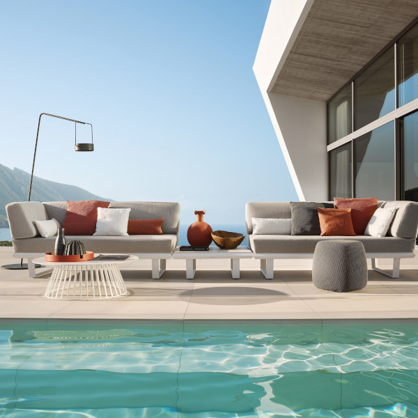 Wählen Sie aus drei Basismodulen und komplettieren Sie das Set wahlweise mit Rückenlehnen, Tischplatten oder weiterem Zubehör. Tischplatten sind erhältlich in Keramik und Dekton. Für die Kissen bieten wir Ihnen ebenfalls eine enorme Bandbreite an hochwertigen solpuri-Bezugsstoffen. Wissen Sie ja, es soll Ihnen ja nicht langweilig werden, oder?