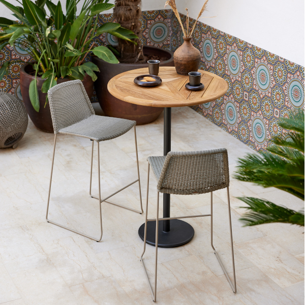 Sie wollen hoch hinaus? Gar kein Problem! Der Breeze Barhocker in Kombination mit einem stilvollen Bartisch ist eine tolle Alternative zu gewöhnlichen Gartenlandschaften. Dabei müssen Sie natürlich auf die besondere Qualität von Cane-line nicht verzichten. Ebenso wie seine Geschwister der Breeze-Kollektion zeichnet sich auch dieser Stuhl durch besonders witterungsbeständige Materialien wie Stahl und Cane-line-Faser aus.