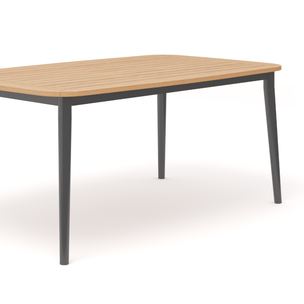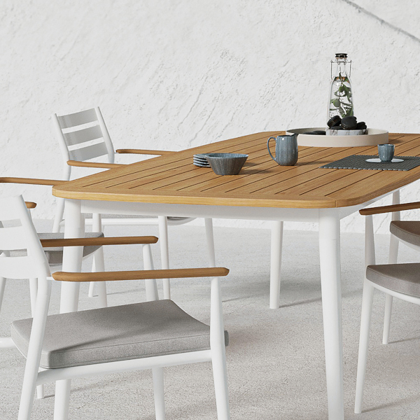 Die Kombination aus Aluminiumgestell und Teakholzplatte ist schlicht, leicht zu handhaben und passt sich auch bereits vorhandenen Gartenstühlen an. Der Esstisch für den Außenbereich aus dem Qualitätshaus solpuri ist in zwei Größen und drei Gestellfarben erhältlich. Wählen Sie zwischen 170 x 100 cm oder 230 x 100 cm in den Farben Weiß, Petrol oder Anthrazit mit Teakplatte.