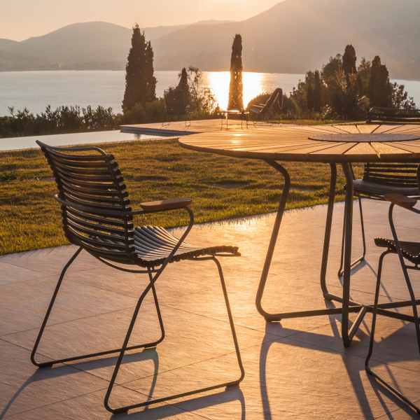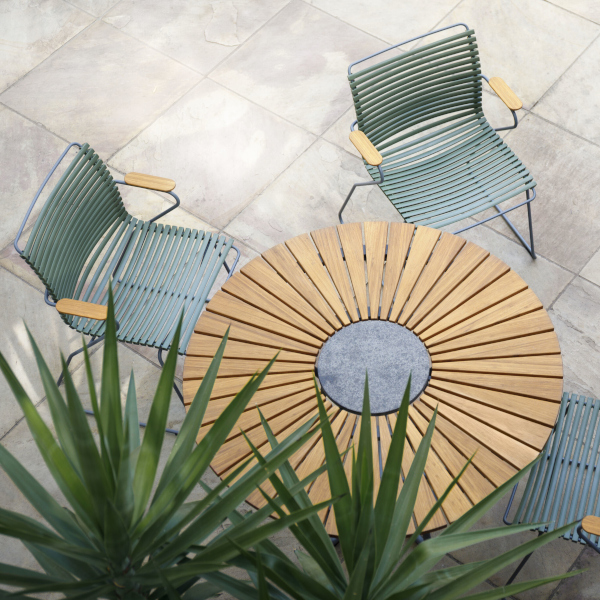 Wer also gerade auf der Suche ist nach einem passenden Tisch, der sich geschmeidig in die bestehende Gartenlandschaft einbindet, der wird jetzt fündig. Circle ist einfach ein Allroundtalent. Und dank der Bambus-Lamellen und des Aluminiums-Gestells natürlich wetterfest und ganzjährig im Freien nutzbar.