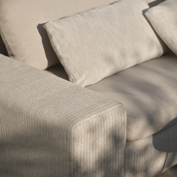 Das Aluminiumgestell sorgt für Stabilität und eine moderne, leichte Optik. Bezogen ist die Lounge mit dem hochwertigen Yalees Fabric aus 100 % Polypropylen, das speziell für den Outdoorbereich entwickelt wurde. Für besonders hohen Komfort sorgen die großzügigen Sitz- und Rückenkissen aus Sunbrella in Beige, die nicht nur angenehm weich sind, sondern auch durch ihre langlebigen und wetterbeständigen Eigenschaften überzeugen.