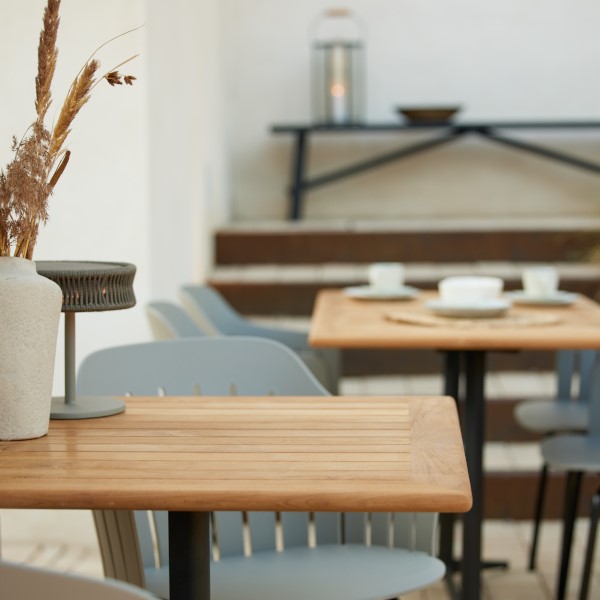 Die Drop Bistrotische von Cane-line setzen auf die unschlagbare Kombination von Aluminiumgestell und Teakholzplatte, und voilà, da ist er, unser neuer Stil-Star im Outdoor-Bereich. Die Platte? Robust und widerstandsfähig, inspiriert vom nordischen Flair – perfekt, um einen eleganten und gleichzeitig toughen Gartentisch zu zaubern.