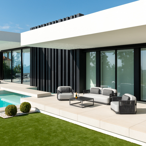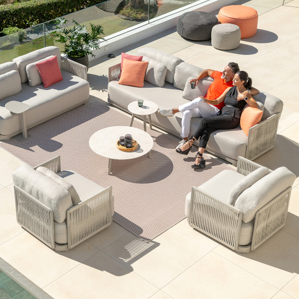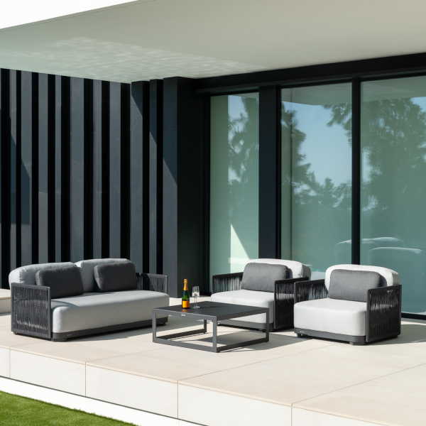 -> Rücken- und seitliche Armlehnen bestehen ebenfalls aus Aluminium, bespannt mit weichem Rope-Geflecht.