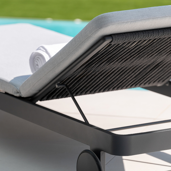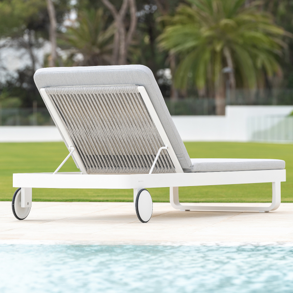 Mit Durbuy stellt Jati&Kebon in diesem Jahr das jüngste Familienmitglied, die Sonnenliege Durbuy vor. Eine neu designte Sonnenliege, die nicht nur elegant ist, sondern vor allem durch ihre hochwertigen und robusten Materialien besticht. Die Liegefläche und der Rahmen bestehen aus Aluminium, das Rückenteil aus flexiblem weichem Rope-Geflecht. Durch das Aluminium-Rechteckrohr bleibt das Rückenteil dauerhaft bequem, die Liegefläche bleibt gerade und lässt sich nicht durchbiegen. Die maßgefertigten, weichen Kissenauflagen sind separat als Zubehör erhältlich. Durbuy lässt sich mit oder ohne angebrachte Rückenlehne, die auch als Armlehne dient, verwenden. Erhältlich in Eisengrau/Schwarz.