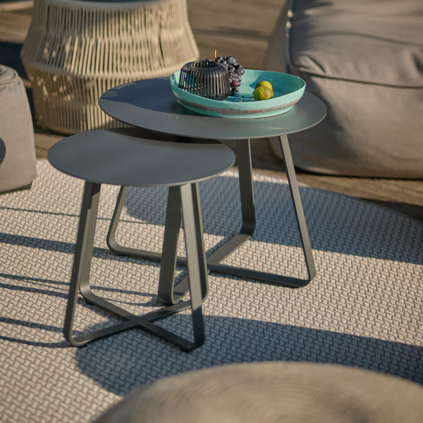 Der kleine Gartentisch Elko von Jati & Kebon in drei Größen, hilft, wo er kann. Darüber hinaus ist er dank seines pulverbeschichtetes Aluminium-Gestells pflegeleicht und ein echtes Leichtgewicht. Der Tisch ist witterungsbeständig und kann das ganze Jahr im Außenbereich genutzt werden.