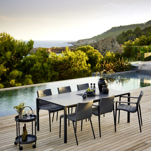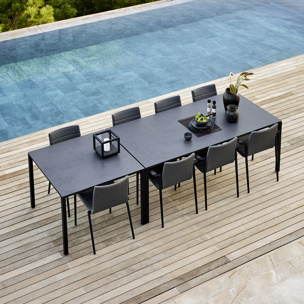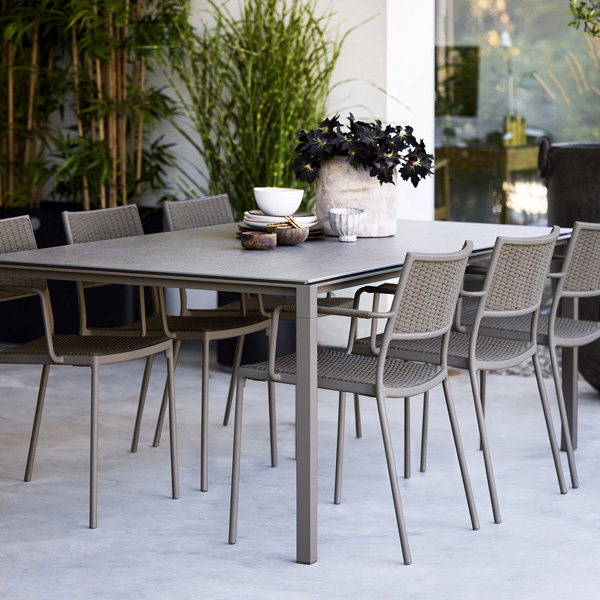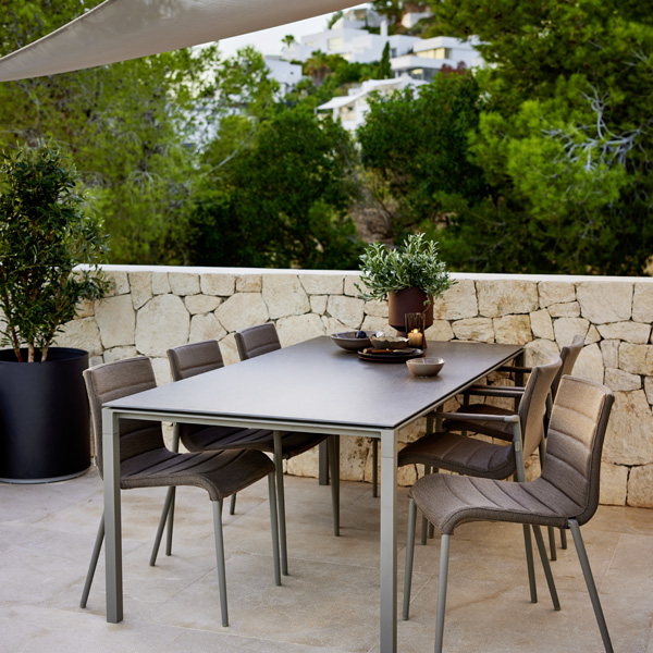 Der Pure Tisch besticht, wie der Name es bereits vermuten lässt, durch sein minimalistisches Erscheinungsbild. Klare Kanten und Linien zeichnen diesen Esstisch aus und machen ihn somit allseits einsatzbar. Ob auf der Terrasse oder im Indoorbereich – der Pure macht überall eine gute Figur.