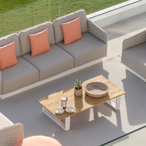 Sie haben eine Lounge und sind noch auf der Suche nach einem Tisch? Dann hätten wir hier doch etwas Passendes für Sie: den Fano-Coffeetable von Jati & Kebon. Gefertigt aus einem Mix aus hochwertigstem Aluminium und warmem Teakholz ist er die perfekte Ergänzung für jede bestehende Gartenlandschaft. Natürlich für den ganzjährigen Einsatz im Freien geeignet. Dazu leicht und ideal kombinierbar.