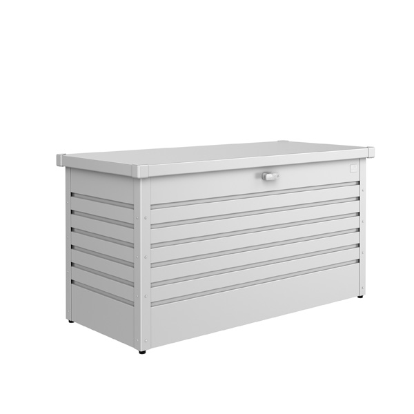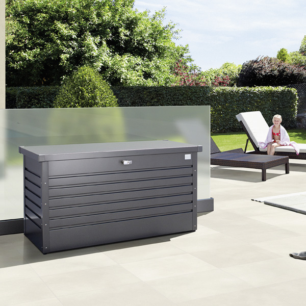 Erhältlich in 4 Größen und 5 Farben ist sie die kleine Schwester der Loungebox und steckt locker all das weg, wofür Sie sonst keinen Aufbewahrungsort haben wie Sitzkissen, Sonnenliegen, Stühle oder Spielzeug.