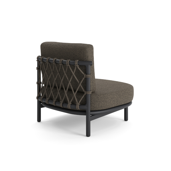 Das stabile Aluminiumgestell in Eisengrau bildet die langlebige Basis der Lounge. Ergänzt wird es durch hochwertiges Kunststoffgeflecht im Farbton Mocca, das der Möbelserie eine besonders markante und zugleich warme Optik verleiht.