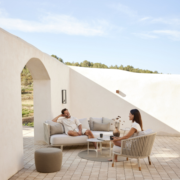 Es ist aus dem patentierten Cane-line Soft-Rope® hergestellt und hat Softtouch QuickDry Kissen. Das Cane-line QuickDry®System ist eine besondere Technik für Ihren Komfort - ungefähr eine Stunde nach dem Regenwetter sind Ihre Kissen wieder trocken.