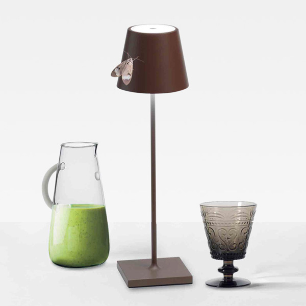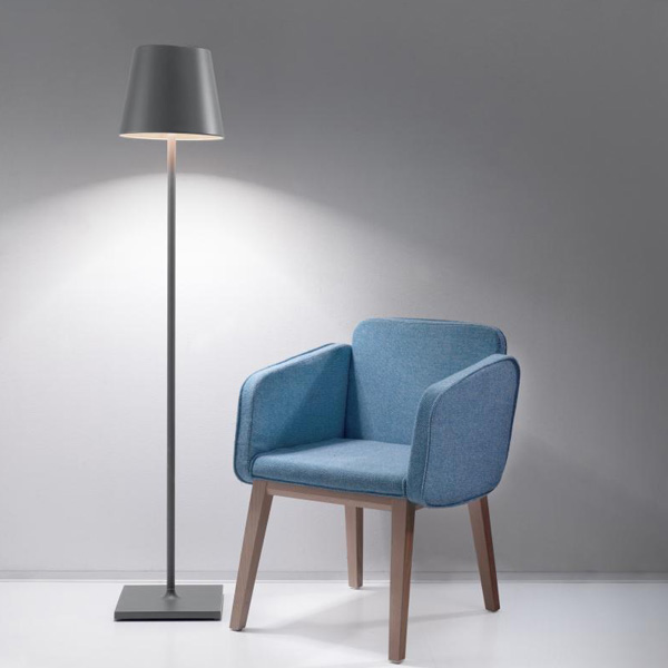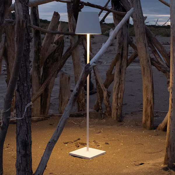 Schlauer Kopf, oder? Das Gehäuse besteht aus lackiertem Aluminiumdruckguss, der Diffusor aus Polycarbonat, was die Poldina Pro mit der Schutzart IP65 ausstattet, und für den In- und Outdoorbereich verwendbar macht. Und jetzt noch der Oberknaller: Die Poldina nervt nicht mit langen Kabelsalaten, sondern ist eine per Akku aufladbare Lampe, die sich einfach dort drapieren lässt, wo sie gerade Licht brauchen. Bis zum nächsten Gebrauch stellen Sie die Lampe einfach zurück auf Ihr Ladepad – eine innovative Kontaktladestation.