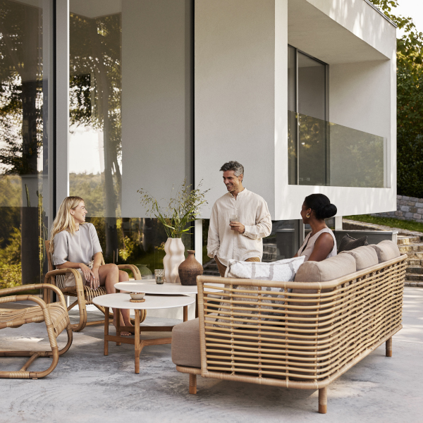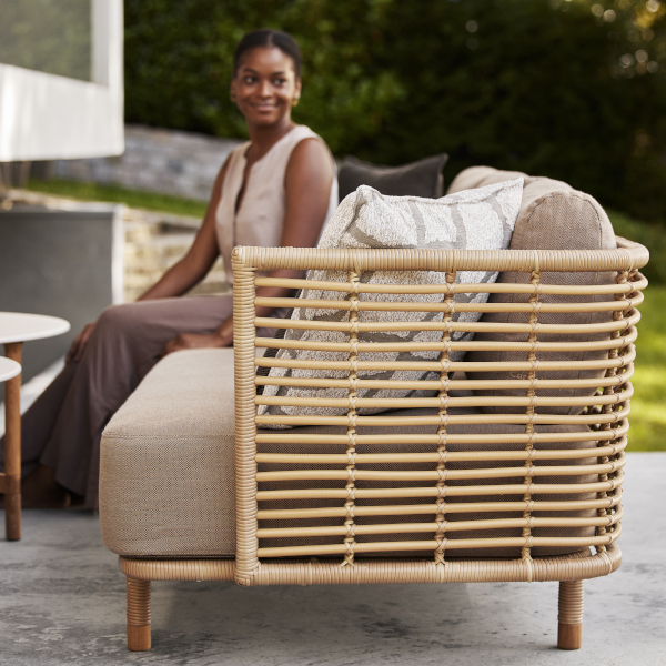 Entwickelt wurde das geräumige Sofa aus witterungsbeständigen Cane-line Weave®, das für einen einladenden natürlichen Look sorgt. Sense verfügt über komfortable Polster aus Cane-line AirTouch mit unserem QuickDry & Airflow-System, wodurch sie schon etwa eine Stunde nach einem Regenschauer wieder trocken sind. Das Gestell ist aus Aluminium, was Ihre neue Lounge leicht und einfach verschiebbar macht.