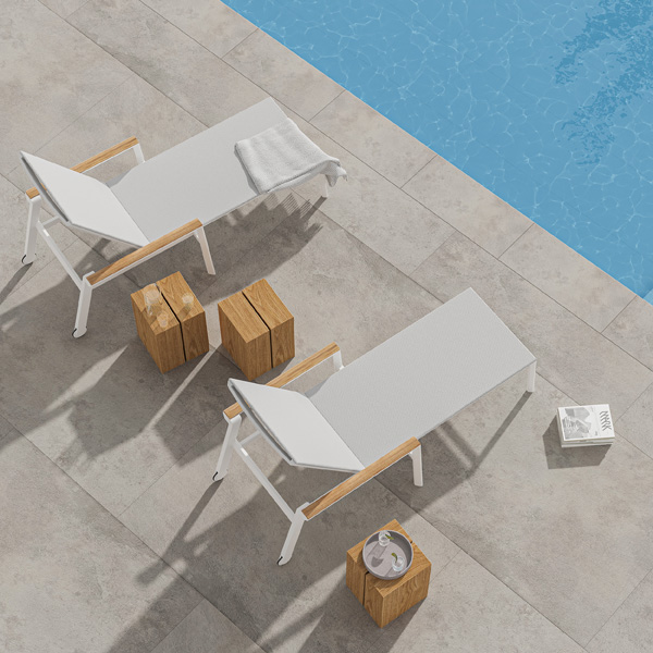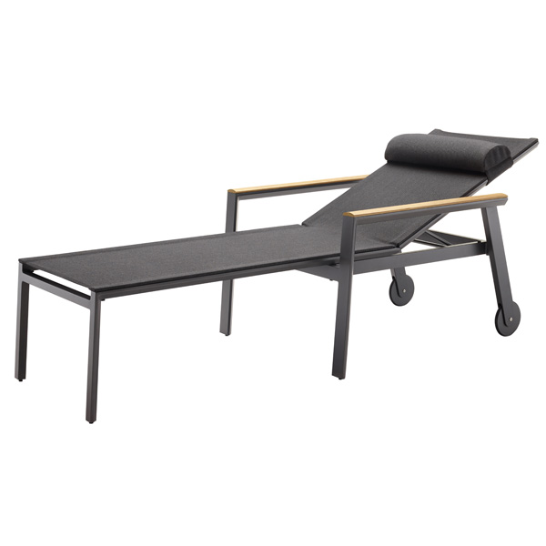 Die gemütliche Liege Spa kommt mit verstellbarer Lehne und wahlweise mit Teak-Armlehnen daher. Wählen Sie je nach Ausstattung Ihrer Terrasse zwischen einem strahlenden Weiß oder einem edlen Anthrazit. Das Softtex-Gewebe hat eine stoffähnliche Haptik, die das Liegen so bequem macht und trotzdem auch beim nächsten Regenguss schnell wieder trocknet.