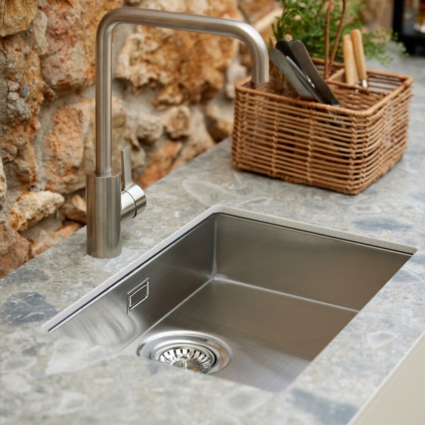 Tauchen Sie ein in die ansprechende Optik und Zweckmäßigkeit dieser Küchenperle. Die Teakholzregale bringen einen Hauch von Natur in Ihre Koch-Oase und bieten selbstverständlich genügend Platz für all Ihre Küchenutensilien. Mit einer großzügigen Arbeitsfläche und handwerklich erstklassiger Verarbeitung in Kombination der hochwertigen Materialien wie Edelstahl und Aluminium ist die Sticks Kitchen ein exklusiver Hingucker für jeden Garten oder Außenbereich.