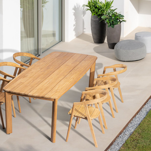 180 x 100 cm oder 240 x 100 cm pures Teakholzvergnügen verspricht der Tofino von Jati & Kebon. Indoor oder Outdoor ist eine vielgestellte Frage beim Anblick dieses robusten Tisches in Bootsform, der mit den 4 Lamellen Leichtigkeit hat. Langlebigkeit ist durch das Teakholz sichergestellt, es behält die Form und die Stabilität.