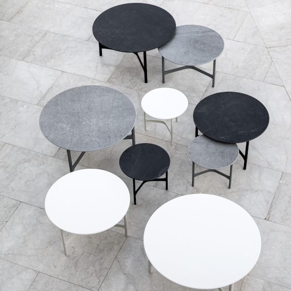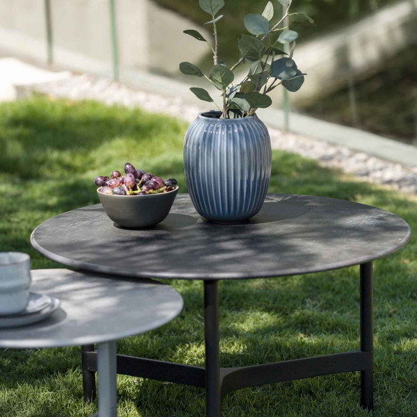 Und: Sollte der Herbst nahen, macht er sich auch hervorragend im Wohnzimmer! Sein Gestell aus pulverbeschichtetem Aluminium ist ein echtes Leichtgewicht und lässt sich problemlos innerhalb der Gartenlandschaft verschieben. Erhältlich ist dieses praktische Lieblingsteil in zwei Größen (Ø 45 und 70 cm) und wahlweise mit HPL- oder Keramikplatte. Beide Materialien zeichnen sich als absolut lichtecht, kälte- und hitzebeständig und pflegeleicht aus.